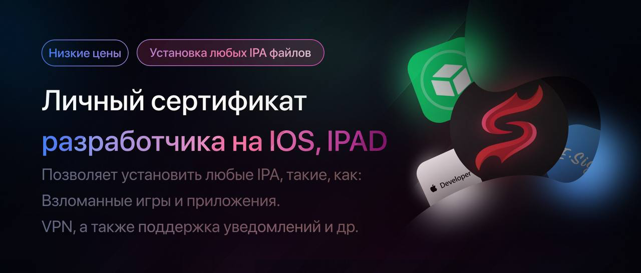 РекомендуемЛичный сертификат, зарегистрированный на UDiD вашего устройства У вас появится возможность устанавливать любые iPA файлы в любом количестве. Моментальный - срок активации 15 минут.